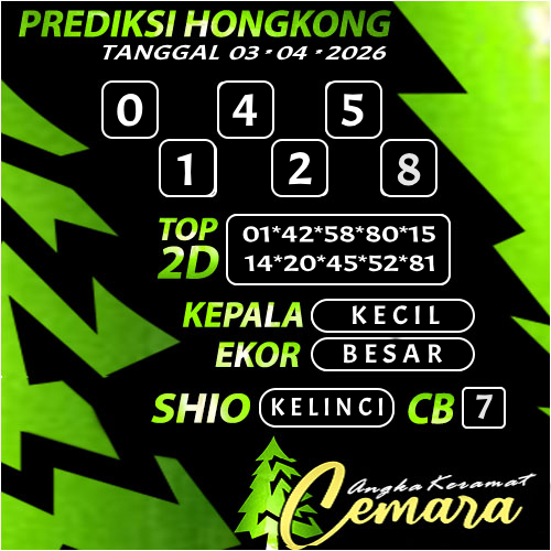 Prediksi ANGKA KERAMAT HONGKONG 03 MARET 2026 berdasarkan dari Prediksi Cemara yang sudah diperhitungkan dengan sangat baik. Dengan perhatian yang penuh untuk mendapatkan Angka yang tepat untuk Jackpot Dipasaran Hongkong