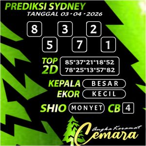 Prediksi ANGKA KERAMAT SYDNEY 03 APRIL 2026 berdasarkan dari Prediksi Cemara yang sudah diperhitungkan dengan sangat baik. Dengan perhatian yang penuh untuk mendapatkan Angka yang tepat untuk Jackpot Dipasaran Sydney