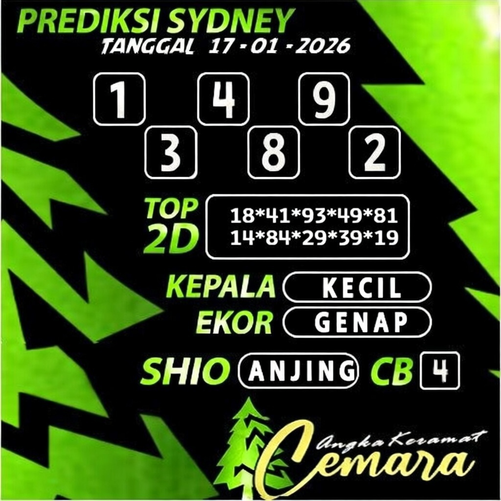Prediksi  ANGKA KERAMAT SYDNEY 17 JANUARY 2026  berdasarkan dari Prediksi Cemara yang sudah diperhitungkan dengan sangat baik. Dengan perhatian yang penuh untuk mendapatkan Angka yang tepat untuk Jackpot Dipasaran Sydney