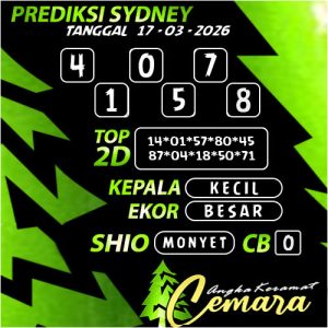Prediksi ANGKA KERAMAT SYDNEY 17 MARET 2026 berdasarkan dari Prediksi Cemara yang sudah diperhitungkan dengan sangat baik. Dengan perhatian yang penuh untuk mendapatkan Angka yang tepat untuk Jackpot Dipasaran Sydney