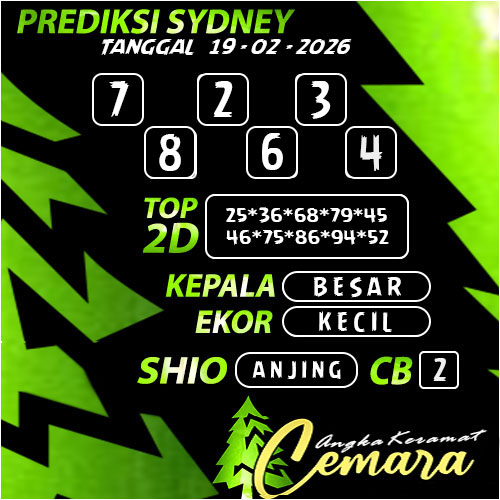 Prediksi ANGKA KERAMAT SYDNEY 19 FEBRUARY 2026 berdasarkan dari Prediksi Cemara yang sudah diperhitungkan dengan sangat baik. Dengan perhatian yang penuh untuk mendapatkan Angka yang tepat untuk Jackpot Dipasaran Sydney
